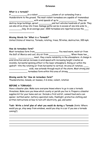 Tornado worksheets tornado word search worksheet tornado word scramble worksheet tornado word shapes worksheet tornado math puzzle worksheet tornado spelling word list. The tornado (kindergarten) free printable tests and worksheets these pictures of this page are about:tornado worksheet for kids. Click the button below to get instant access to these worksheets. Do you know how tornadoes form?this science worksheet diagrams what is known about what causes tornadoes to form. A tornado is a tube of violently spinning air that touches the ground. Worksheets are all about tornadoes the science behind tornadoes, tornado, fema tornadoes fact, lesson p. While hurricanes are intense and scarry to say the least, they can not match the 300 miles per hour winds of an f5 tornado. Most tornadoes are frequent in the tornado alley because all the necessary ingredients for a tornado come together mainly in this place. = open link in new window. *weather worksheets* tornado worksheet from twistynoodle.com. Learn the basics of tornadoes explore forms of energy discover why some homes are stronger than others use. If you teach preschool or kindergarten or are a parent of a child who. Worksheets are learning goals for k 12 students, fema tornadoes fact, , tornado safe room work, build it better activity tornado safety handout, word search tornado.